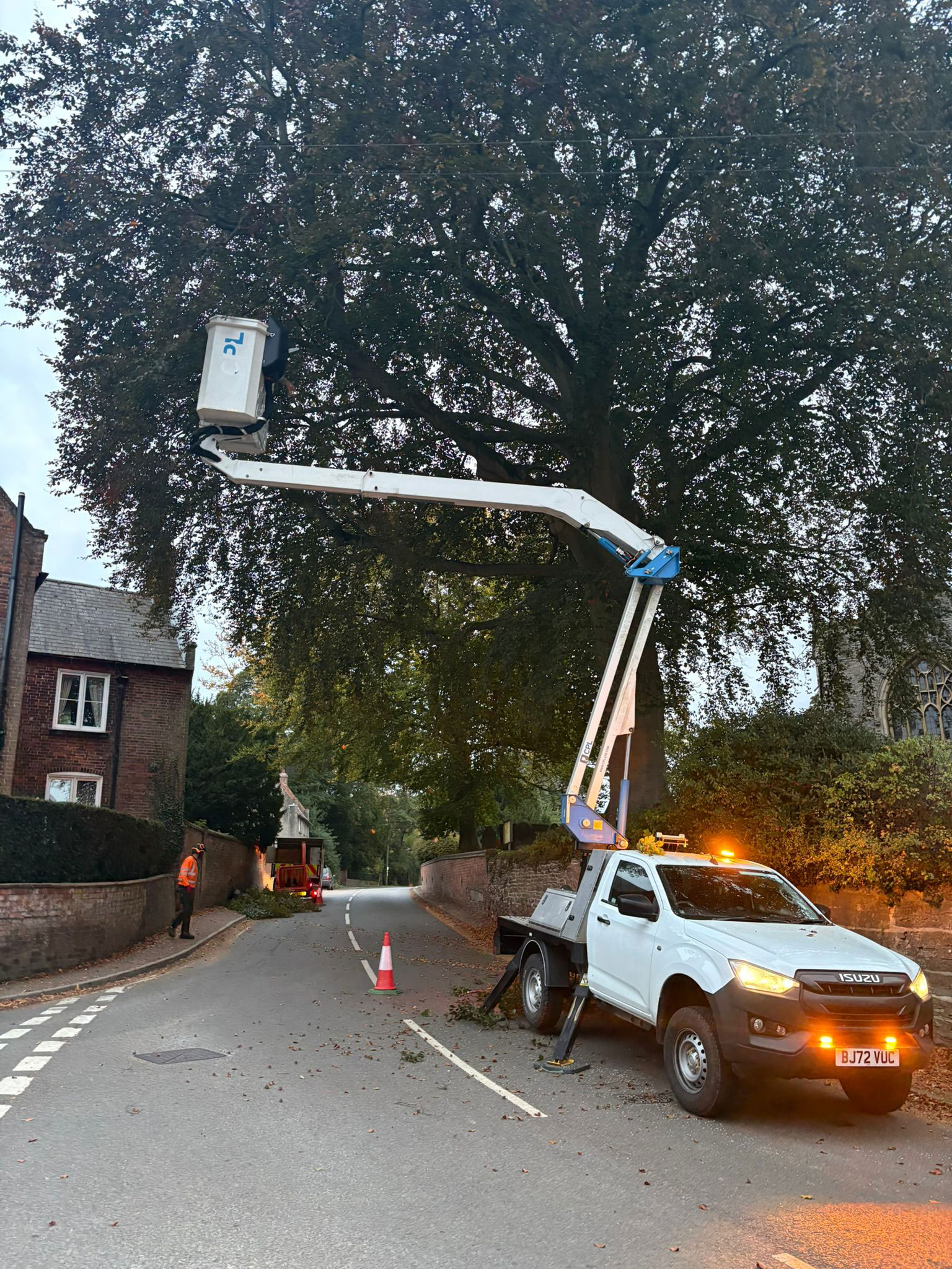 Having obtained the necessary permissions we brought in the cherrypicker and were soon able to tackle the offending branches.