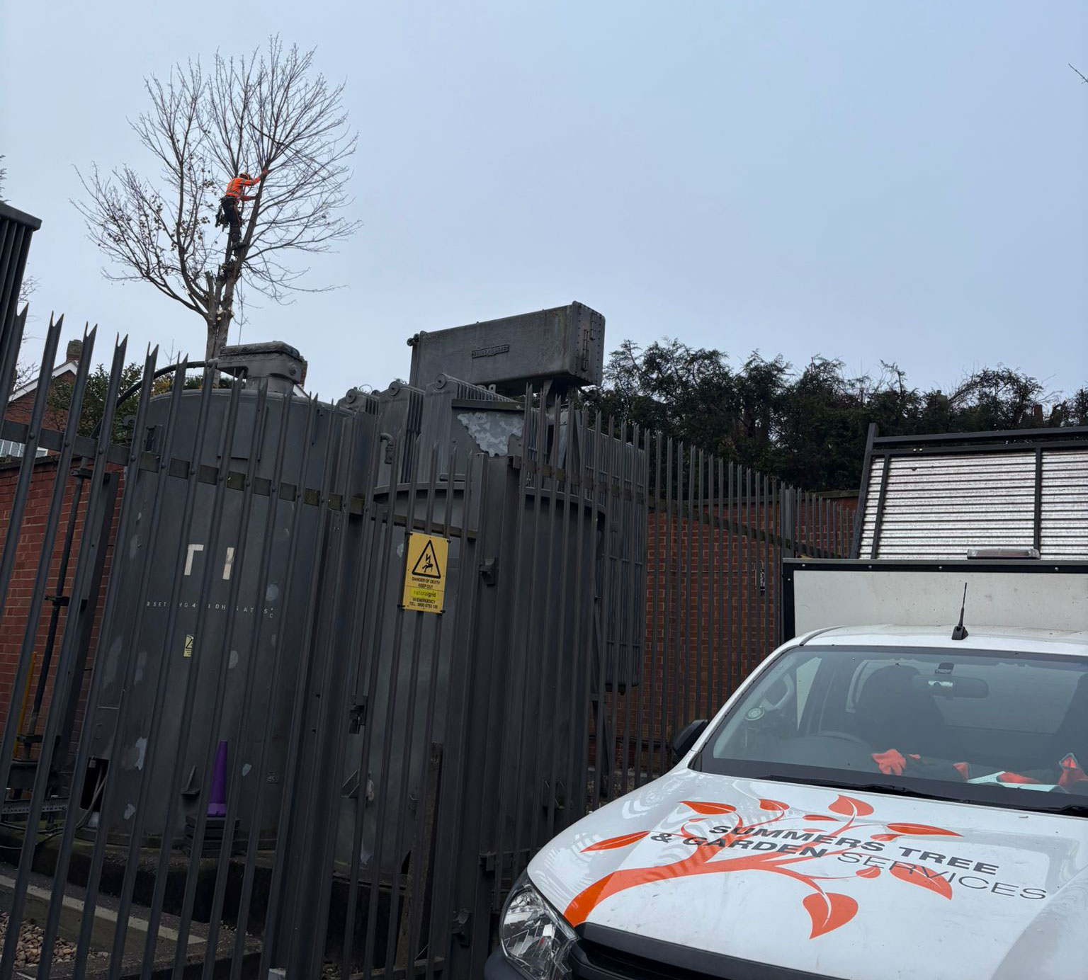 Vital work at a Nottingham electricity substation to keep it clear of vegetation and overhanging branches